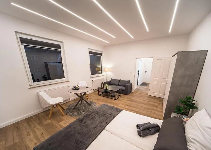 Den är placerad 800 meter från St.-Petri-Dom och ca 300 meter från Sitzendes Paar. Falstaff Die Theaterkneipe och Novazena kan nås inom 8 minuters gångavstånd från boendet. Kleiner Roland ligger inom gångavstånd.